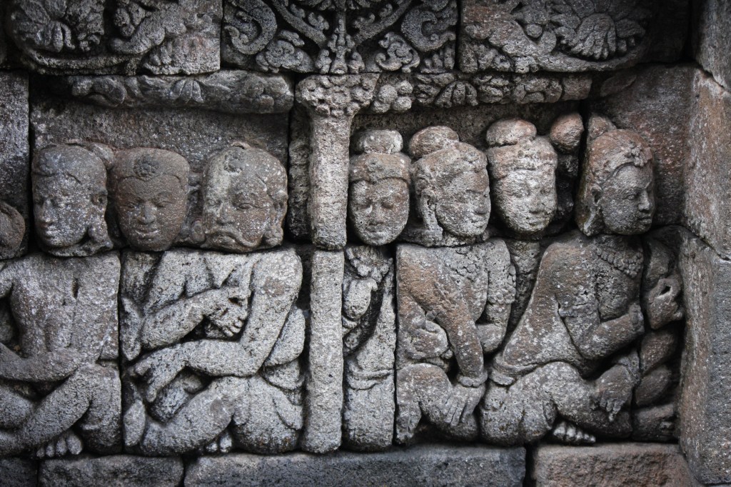 התבליטים מציגים את סיפור חייו של הבודהה, את הסיפורים הקודמים שלו ואת עקרון הקארמה, החקוק בבסיס המקדש. בתבליטים מוסברים עקרונות מוסריים: פעולות טובות מביאות לתוצאות טובות, ופעולות שליליות לתוצאות רעות. בנוסף, הם משקפים מידע על חיי היום‑יום, כמו כלים, בגדים, חיות וצמחייה באי ג'אווה.